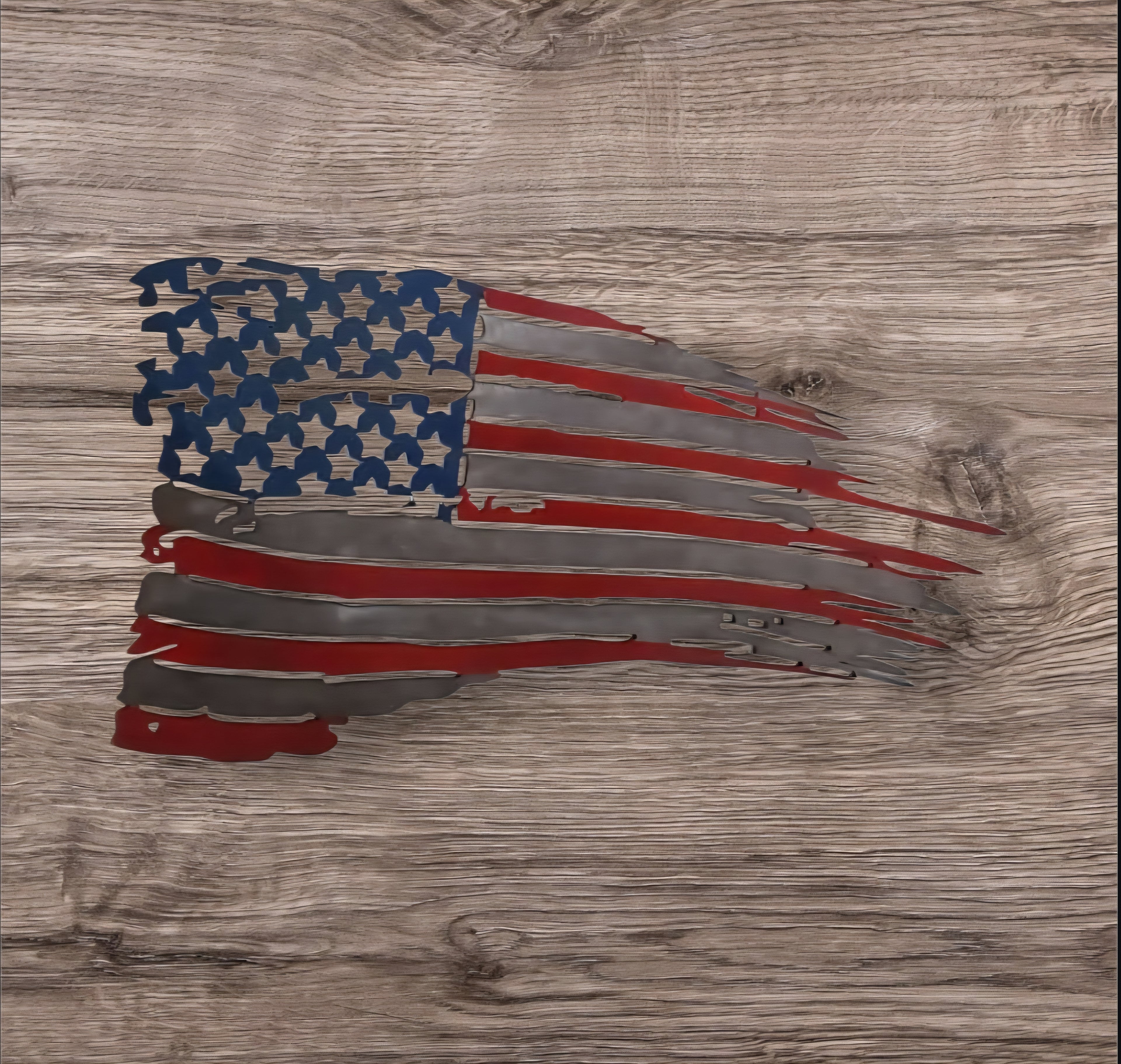 USA Map with Stars & Stripes – Raw Steel (12-Gauge)